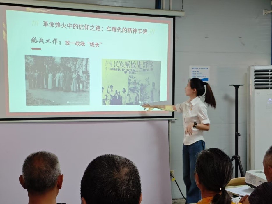 学生党员、“理响红途”理论宣讲团成员李莎同志作了题为《松柏常青 铁规永存:从车耀先烈士到中央八项规定精神传承》的主题宣讲。她深刻阐释了从革命先烈的纪律坚守到新时代铁规正风的红色精神谱系,强调了纪律建设的时代价值与历史传承。