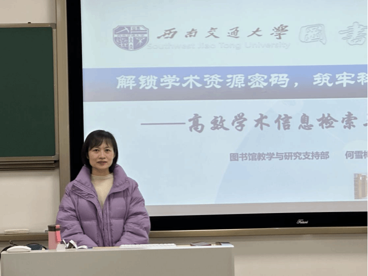 12月5日,西南交通大学图书馆教学与科研支持服务部主任何雪梅在X30406教室作“解锁学术资源密码,筑牢科研素养根基”专题讲座。何雪梅教授从博士学位阶段学习目标出发,围绕学术信息数据库高效利用方法展开讲解,并针对检索词选择、检索技巧及结果筛选排序等步骤进行指导,助力青年党员提升科研能力,让在场学生收获颇丰。
