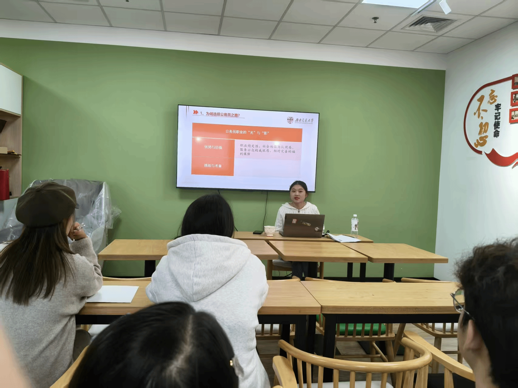 av影片直播“以梦为马”生涯咨询室于10月24日下午在X31309举办了“叩开体制之门——大学生公务员入职全程指导”团体辅导活动。本次活动旨在帮助同学们深入了解公务员岗位,明确职业规划方向,提升备考能力。活动由av影片直播辅导员敬宇主讲。