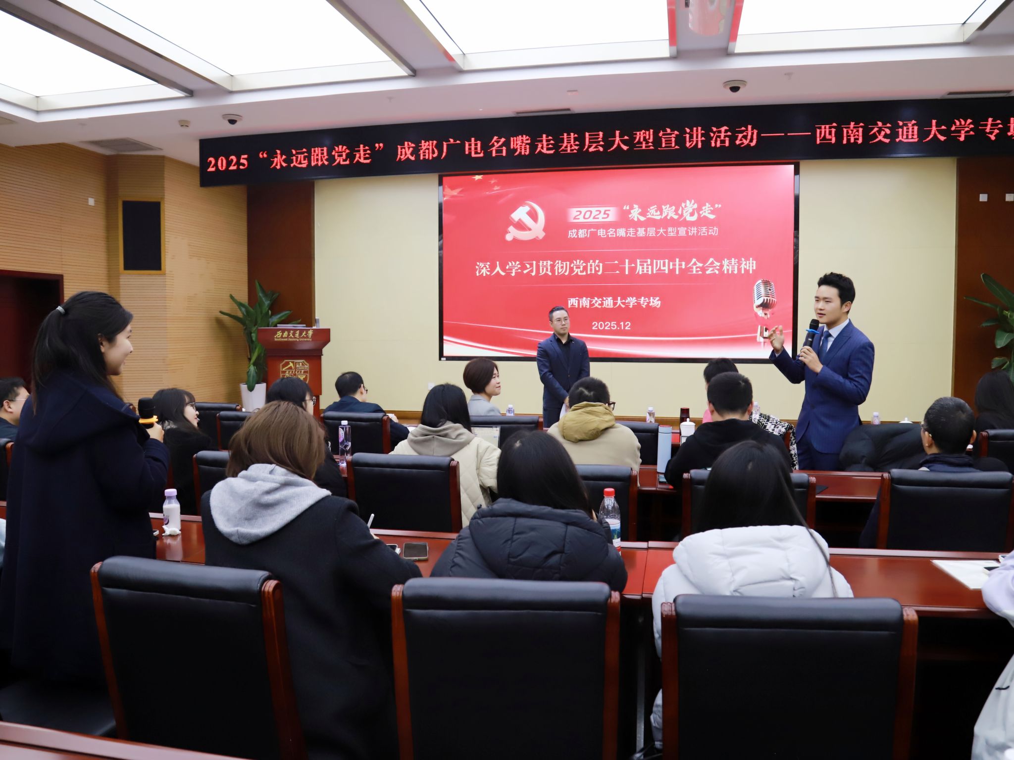 本次“广电名嘴”走进西南交通大学,是理论宣讲与青春力量的一次成功“碰撞”,有力推动了党的二十届四中全会精神在高校青年中入脑入心,激励广大学子为实现民族复兴伟业贡献青春智慧。